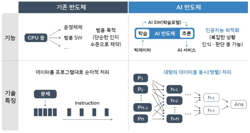 <AI 반도체와 기존 반도체 비교>